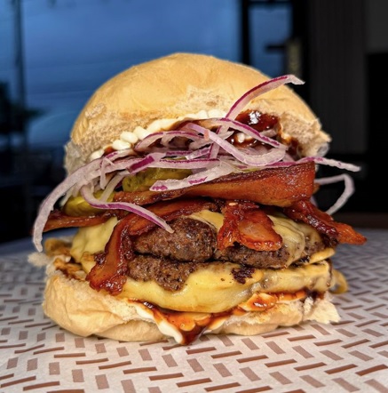 Pão Brioche, maionese caseira, duplo hamburguer artesanal, bacon, alface americana, tomate e queijo mussarela.